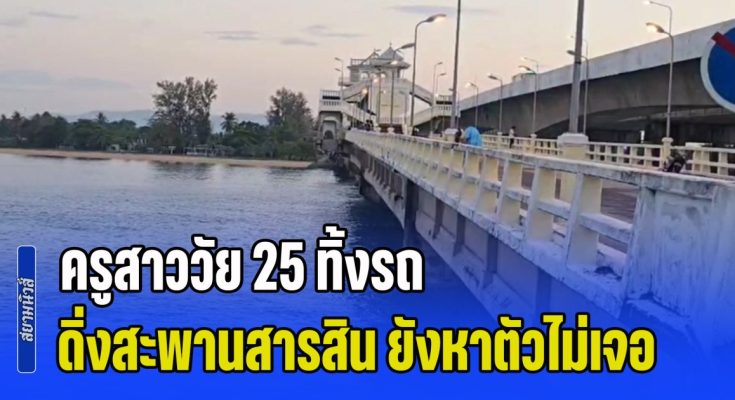 จากการตรวจสอบที่เกิดเหตุเบื้องต้น พบรถจักรยานยนต์จอดอยู่บริเวณสะพาน โดยเป็นรถจักรยานยนต์สีขาวจอดทิ้งไว้ ลักษณะคล้ายเจ้าของรถเดินไปยังบริเวณสะพาน ก่อนจะมีผู้เห็นเหตุการณ์แจ้งว่า หญิงสาวได้กระโดดลงไปในทะเลด้านล่างแล้วหายตัวไป จนถึงขณะนี้ยังไม่พบตัวหญิงสาวแต่อย่างใด ขณะเดียวกันบริเวณจุดเกิดเหตุยังคงมีญาติ และผู้ที่ทราบข่าวเดินทางมารอเฝ้าติดตามการค้นหา ท่ามกลางความหวังว่า จะพบตัวผู้สูญหายโดยเร็ว